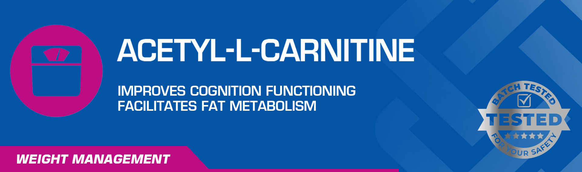 Acetyl-L-Carnitine acts as a delivery system for long chain fatty acids. Without adequate Carnitine levels the fatty acids won’t be utilised for energy and will be stored as fat.